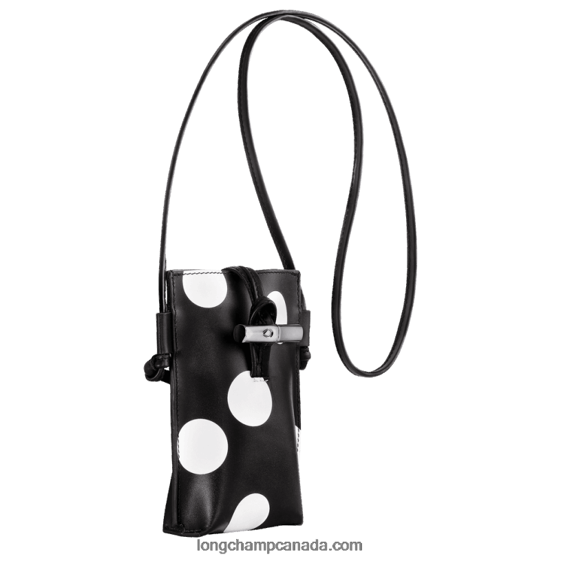 Longchamp Roseau Phone case with leather lace VJ2H4682 Black